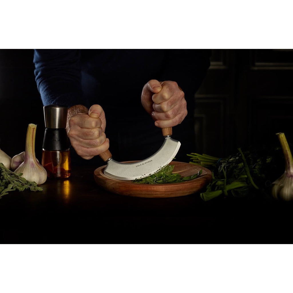 Ergonomische, runde Handgriffe für müheloses Hacken von Kräutern und Gemüse ✔︎