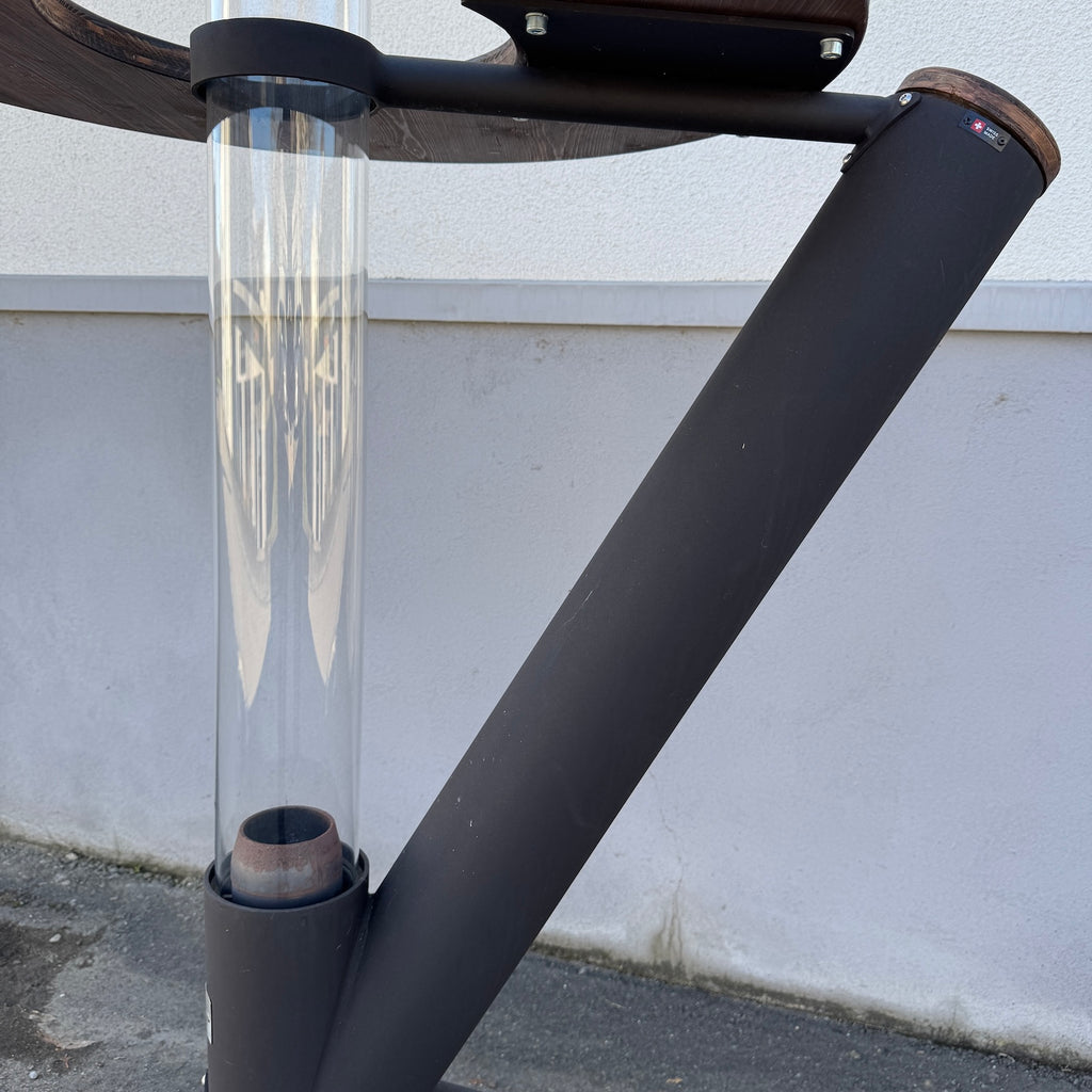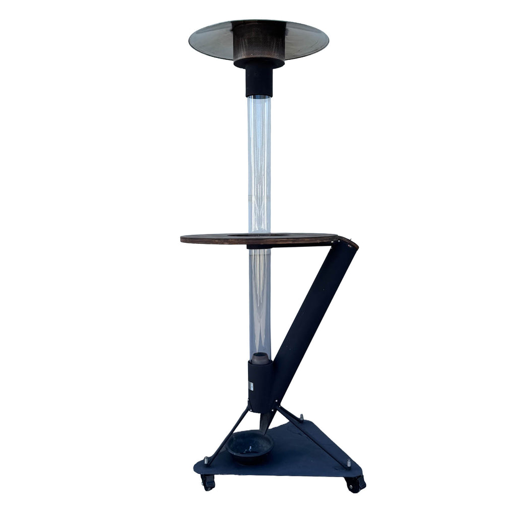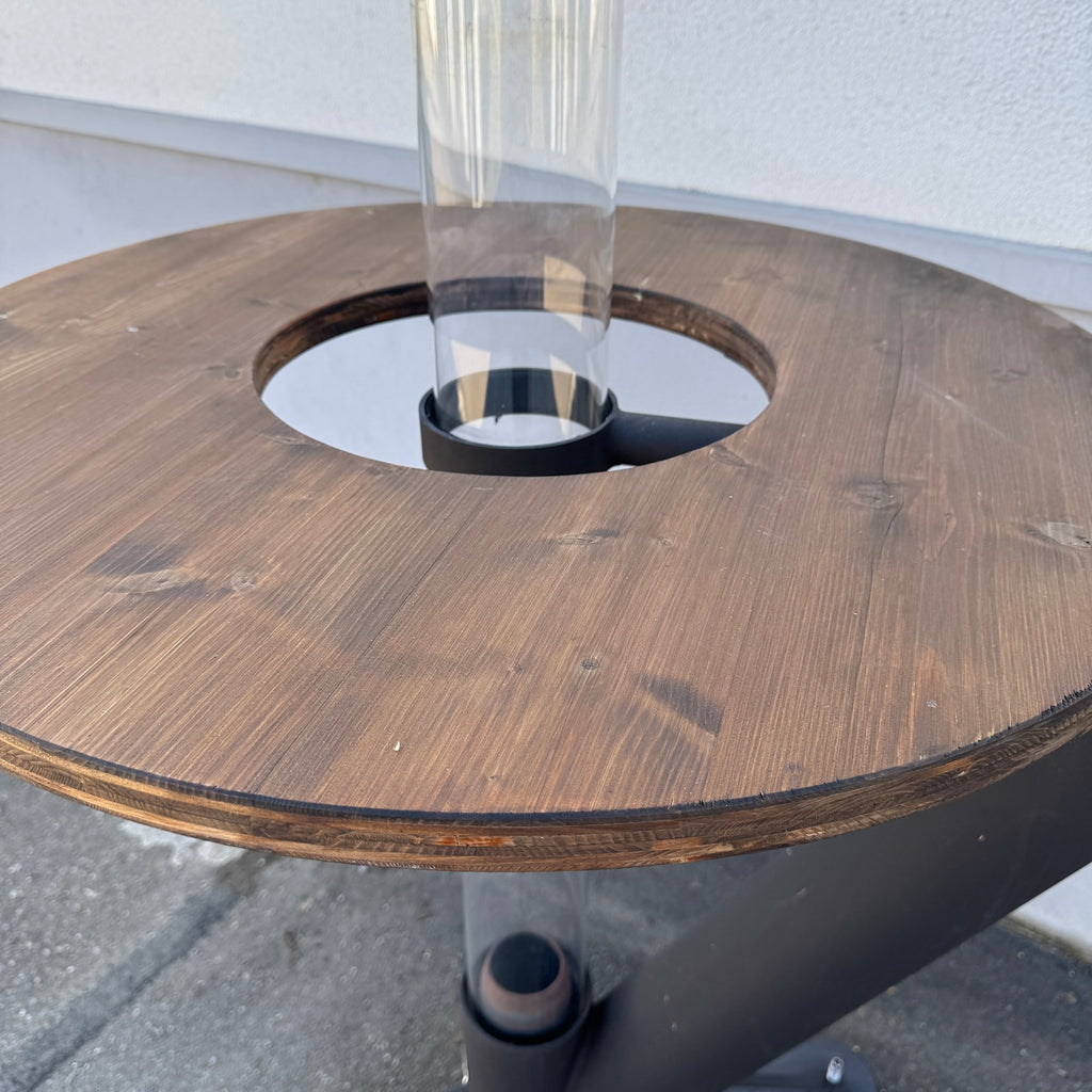 Diese Version ist mit einem Heizpilzaufsatz ausgestattet. Somit ergibt sich mehr Strahlungshitze um die Feuersäule.