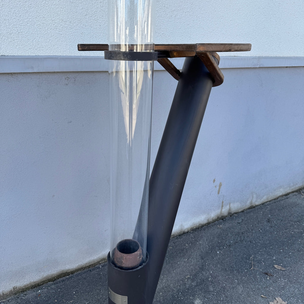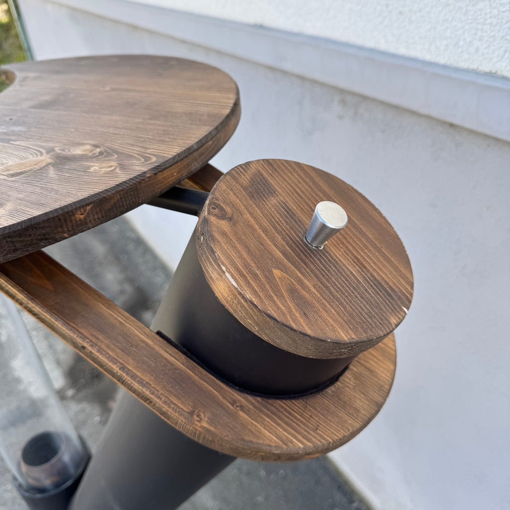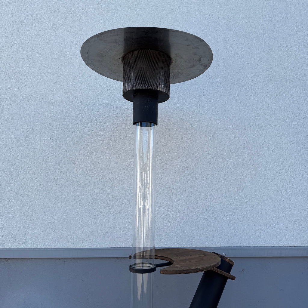 Diese Version ist mit einem Heizpilzaufsatz ausgestattet. Somit ergibt sich mehr Strahlungshitze um die Feuersäule.
