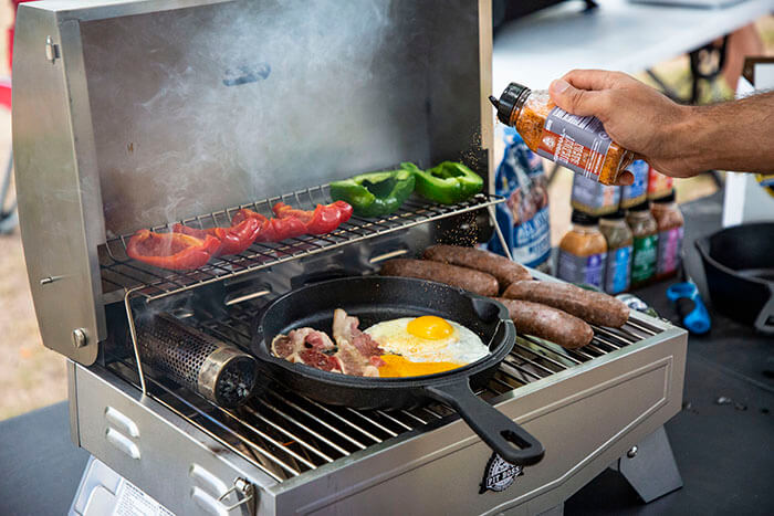 Lasse die Grillpfanne abkühlen, reibe sie erneut mit Öl ein und wiederhole das Prozedere.