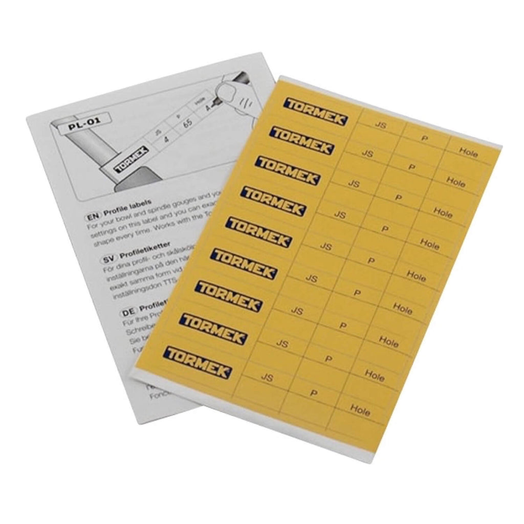Mit den PL-01 Profiletiketten von TORMEK behältst Du den Überblick über Deine Schärfeinstellungen – schnell, einfach und dauerhaft. Klebe das Etikett direkt auf die Zwinge Deines Werkzeugs und notiere dort die individuell eingestellten Schleifwinkel und Formen. So kannst Du beim nächsten Schärfen sofort wieder die exakt gleiche Einstellung reproduzieren.