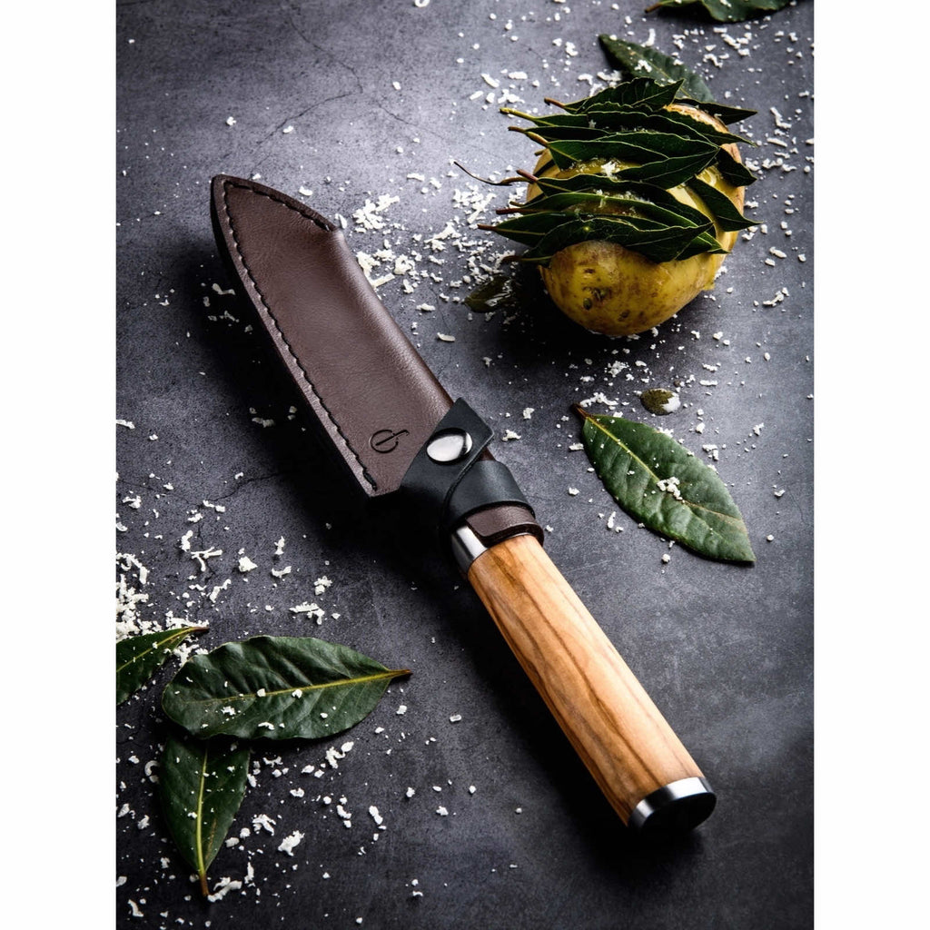 Das Etui ist passgenau für das 14 cm Forged-Santokumesser der Serien Brute, Intense, Olive, Sebra und VG10 gefertigt. Mit einem sicheren Druckknopfverschluss und einer sauberen Nahtführung kombiniert es Funktionalität mit hochwertigem Design.