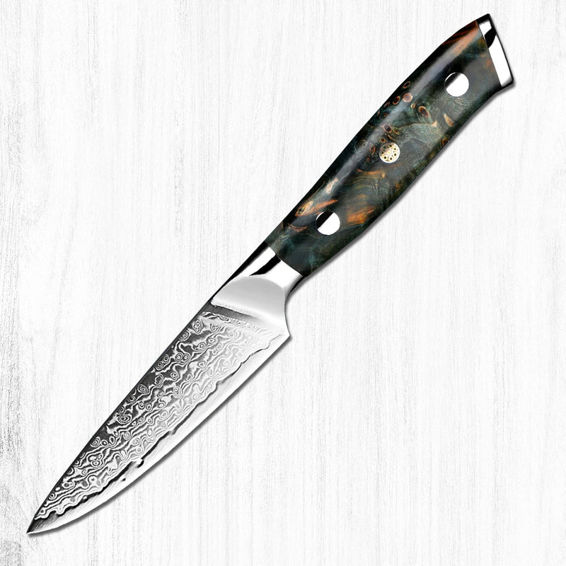 Die Klingenlänge von 9,5 cm ist ideal für das Schneiden, Schälen und Würfeln von Gemüse, und mit einem federleichten Gewicht von nur 90 Gramm wirst du kaum merken, dass du es in der Hand hältst. Der VG10-Kernstahl, kombiniert mit 67 Lagen Damaszenerstahl, sorgt für eine unvergleichliche Schärfe und eine beeindruckende Langlebigkeit deiner Klinge.