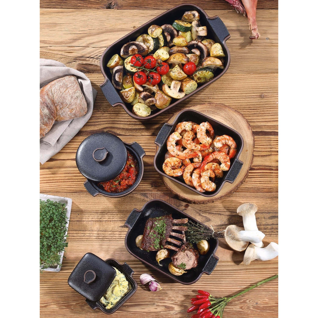 Die hohe Temperaturwechselbeständigkeit macht ihn vielseitig einsetzbar, und die seitlichen Griffe sorgen für einen sicheren Transport. Sein robustes Design und der passende Deckel machen ihn zu einem langlebigen und unverzichtbaren Küchenhelfer.