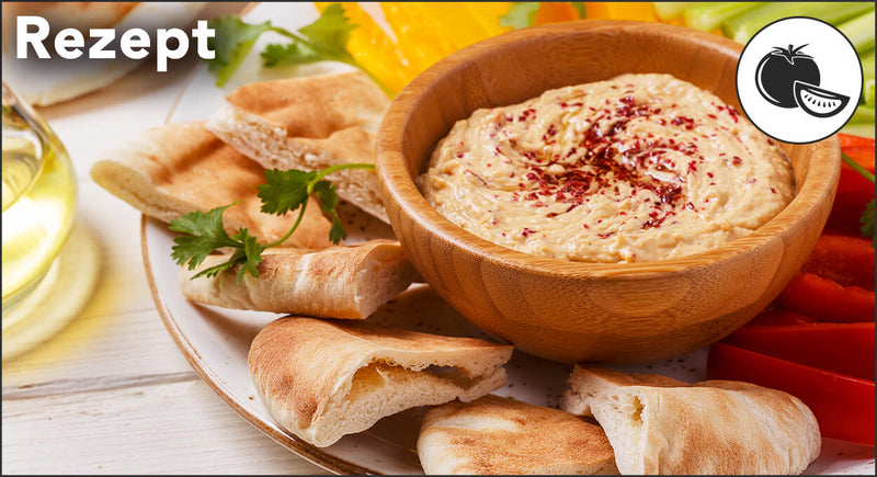 Um den Humus Dip geniessen zu können sind Pita Chips am besten geeignet, es können jedoch natürlich auch Nacho oder Gemüse wie Karotten, Gurken oder Paprika verwendet werden.