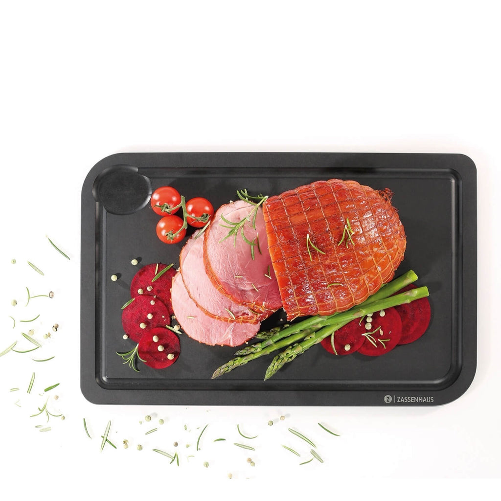 Das Tranchierbrett Comfort Plus ist ein vielseitiger Allrounder für Deine Küche. Dank der beidseitigen Verwendbarkeit eignet es sich sowohl zum präzisen Schneiden als auch zum stilvollen Servieren und bietet Dir maximale Flexibilität im Alltag.