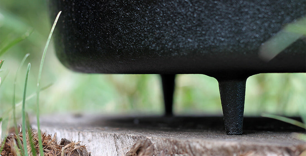 Durch die hervorragenden Eigenschaften des Gusseisens und die spezielle Oberflächenstruktur wird die Wärme effizient gespeichert und weitergeleitet. Die vorbehandelte Oberfläche (seasoned finish) macht ein erstmaliges Einbrennen unnötig und der robuste Feuertopf kann sofort verwendet werden. Im Freien wird er auf dem offenen Feuer oder mit Holzkohle verwendet. Der erhöhte Rand des Deckels ermöglicht es, Glut oder Holzkohle auch auf dem Feuertopf zu platzieren. So wird der Feuertopf von allen Seiten beheizt und eignet sich beispielsweise auch zum Brot backen.