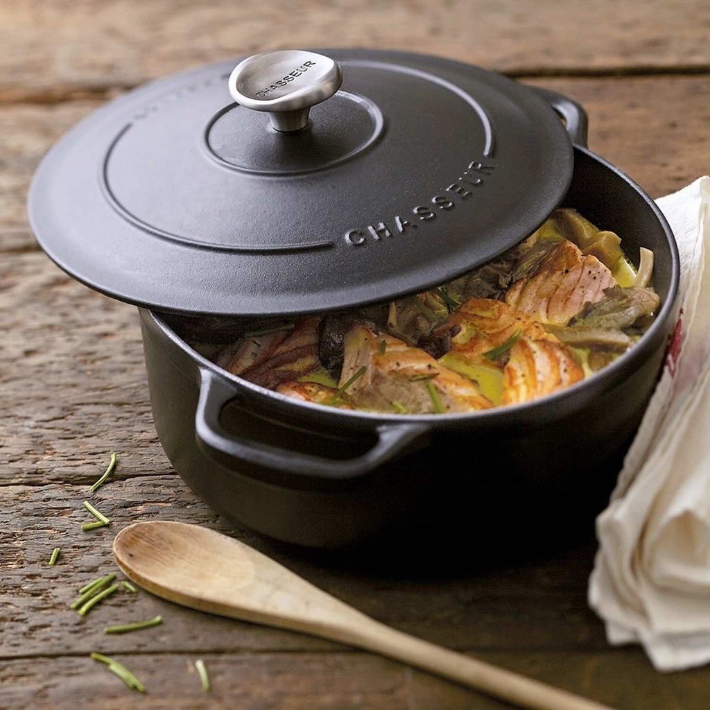 Der ovale Chasseur Bräter in Schwarz Matt ist mehr als nur Kochgeschirr – er ist ein stilvoller Helfer für geschmackvolle Gerichte, der Tradition und moderne Funktionalität auf elegante Weise vereint.