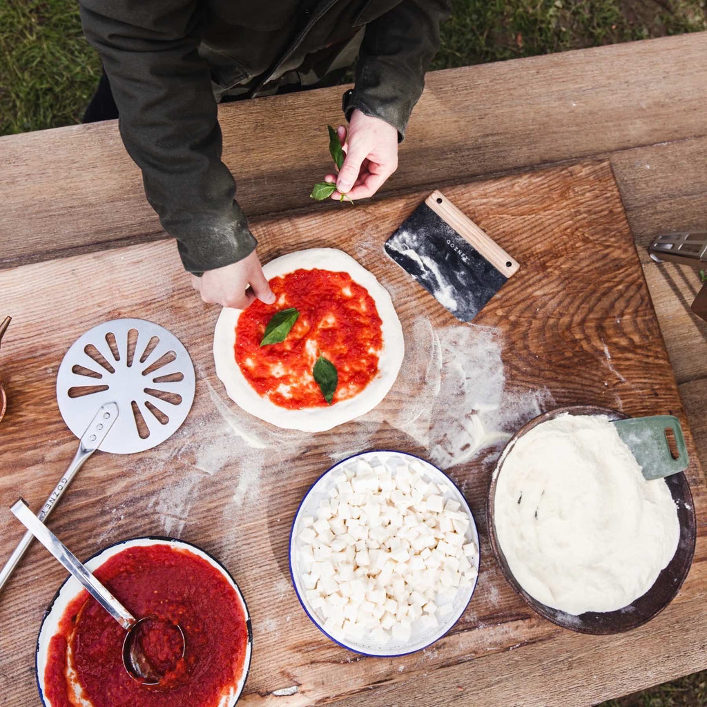 Mit dem Gozney Dough Cutter schneidest und portionierst Du Deinen Pizzateig präzise und kontrolliert – dank angeschrägter Klinge, angenehmem Gewicht und elegantem Holzgriff. Ob zum Teilen, Formen oder Anheben des Teigs – dieses Werkzeug gehört in jede ambitionierte Pizza- oder Brotküche.