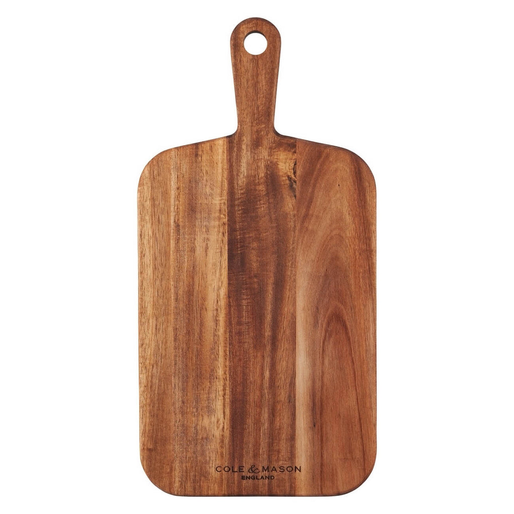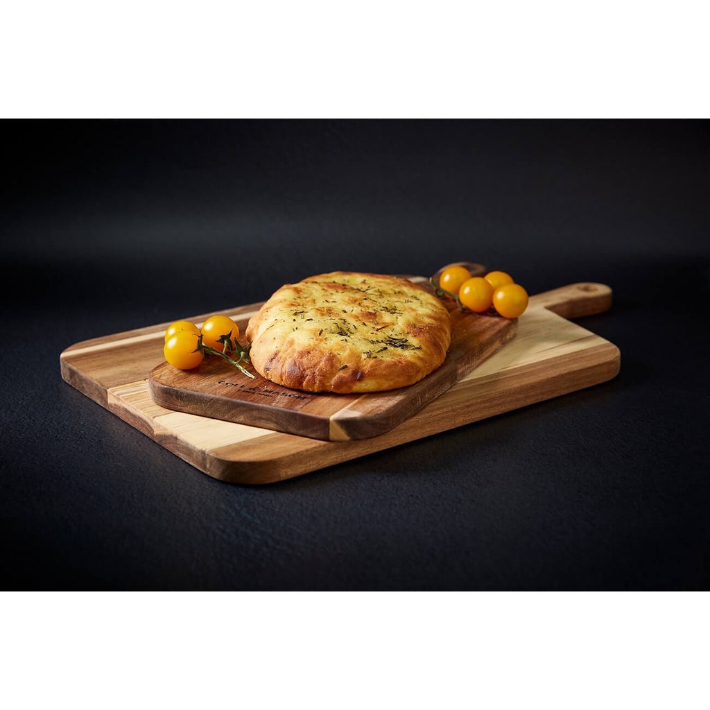 Die Holzschneidbrett Akazie klein 42x21x2 cm ist ein praktisches Küchenzubehör mit stilvollem Design und hoher Funktionalität.