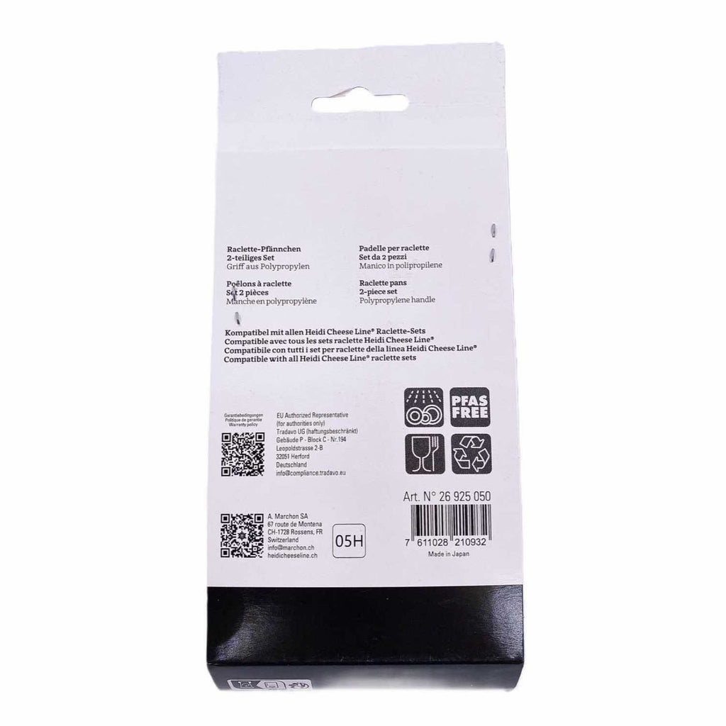 Die Pfännchen verfügen über eine hochwertige Antihaftbeschichtung und lassen sich dank des hitzebeständigen Griffs aus Polypropylen sicher und bequem handhaben. Sie sind mit allen Racletteöfen der Heidi Cheese Line kompatibel.