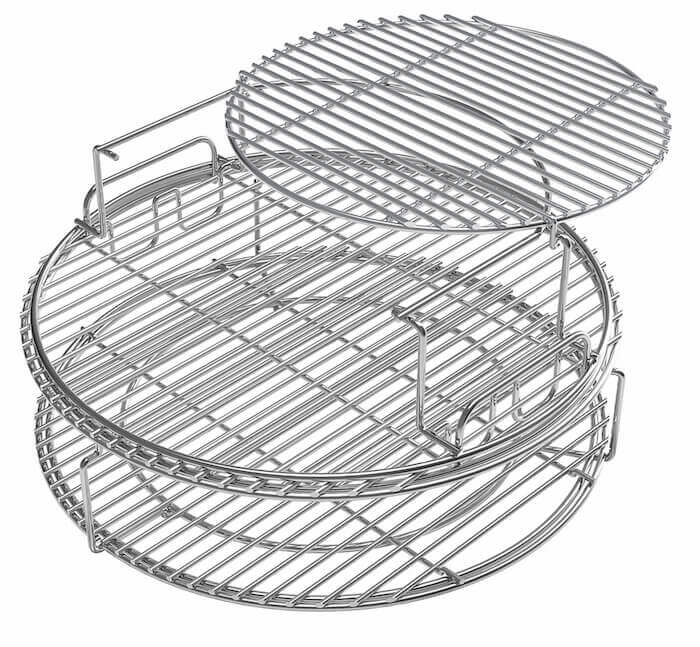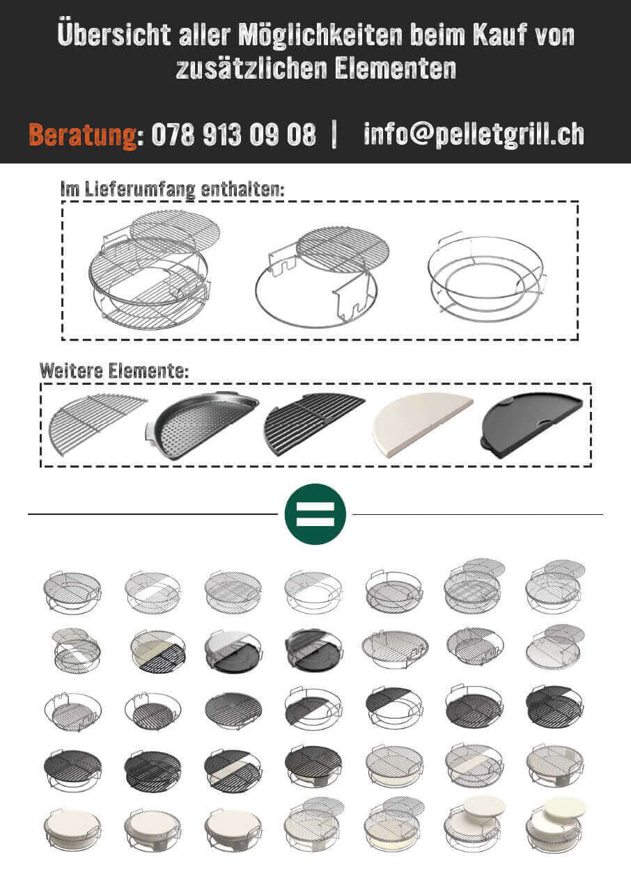 Im Lieferumfang enthalten ist eine zweiteilige Rosterhöhung, einem ConvEGGtor-Korb und zwei halben Edelstahlrosten.