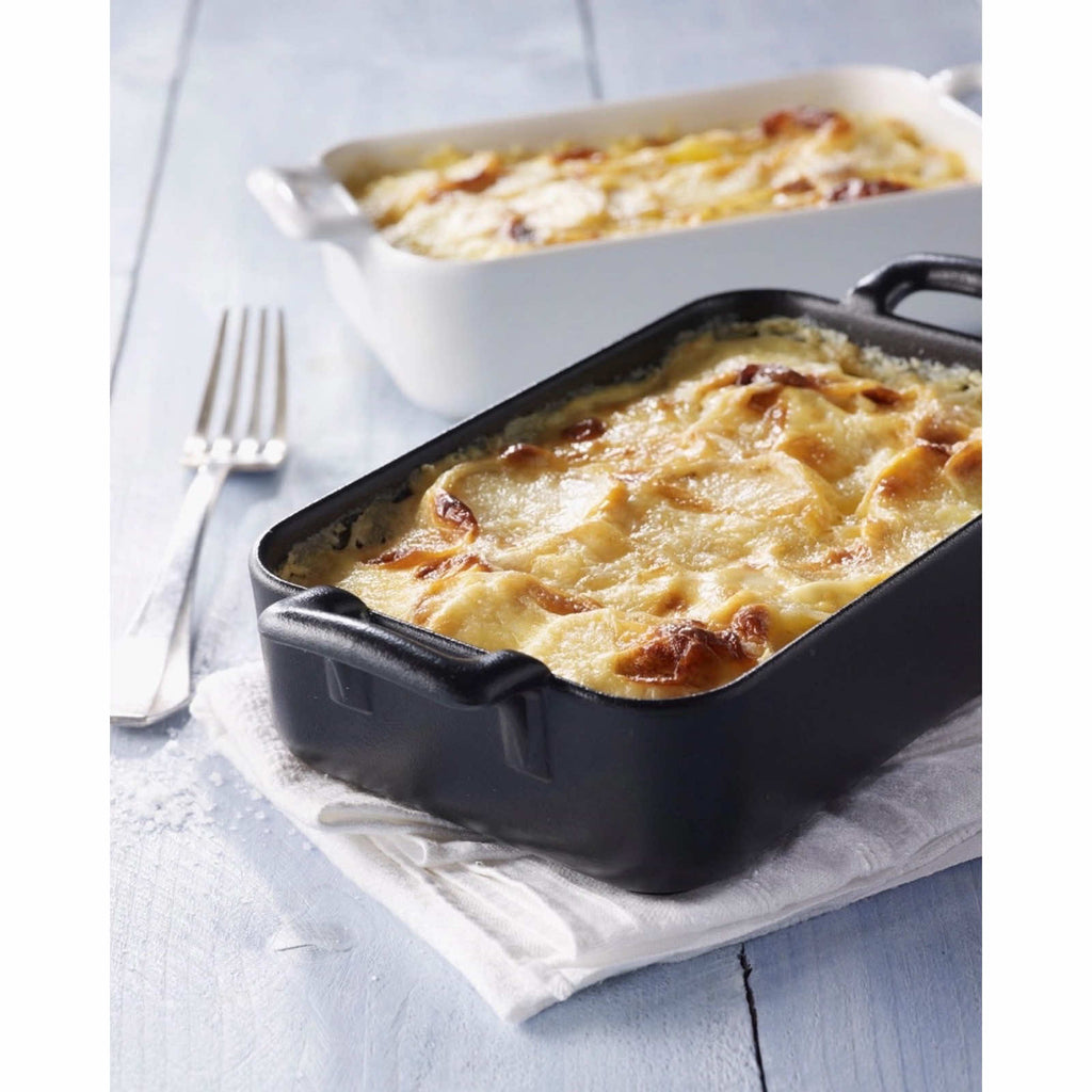 Diese formschöne rechteckige Auflaufform von Revol bringt französische Eleganz in Deine Küche. Ideal für kleine Portionen, Beilagen oder Desserts – und dank ihrer Gusseisen-Optik auch ein echter Hingucker beim Servieren.