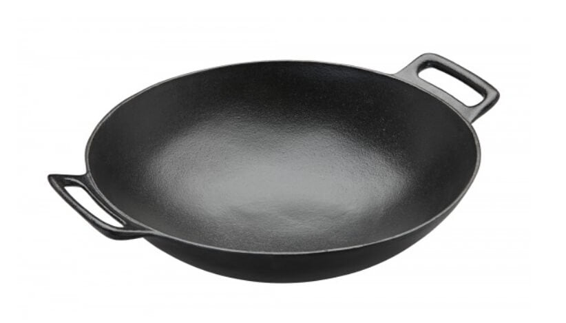 Ein Wok aus Gusseisen mit einem Durchmesser von 36 cm.
