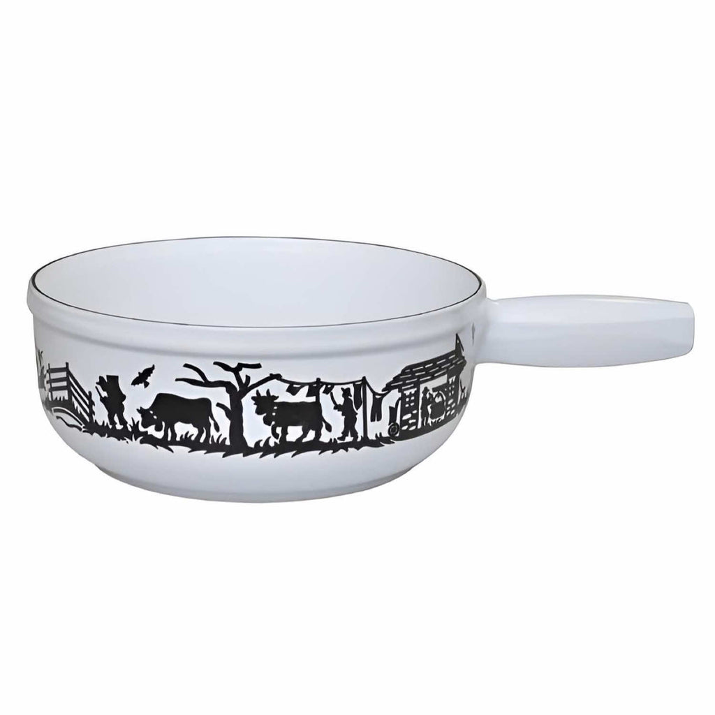 • Weisse Emaille mit traditionellem schwarzem Scherenschnitt-Dekor