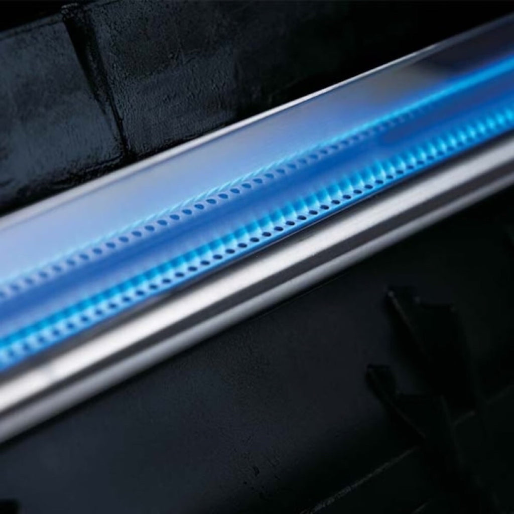 Unter dem Rost befinden sich die Fettbleche (Flav-R) die durch die sehr hohe Hitze eine grosse Menge an heruntertropfendem Fett verdampfen lassen. Zudem verteilen die Flav-R Bleche die Hitze besonders gleichmässig und effizient auf die Garfläche.