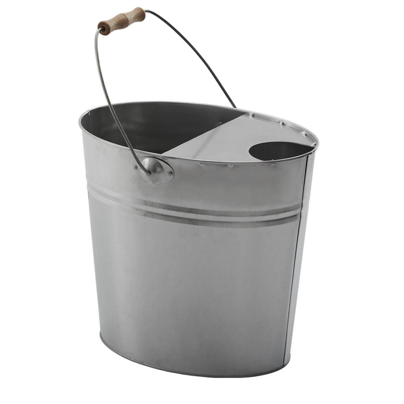 Praktischer Nachfüllbehälter für die Feuersäule von Hämmerli Wärme. Mit diesem Eimerlässt sich einfach die Pellets in das Pelletrohr füllen.