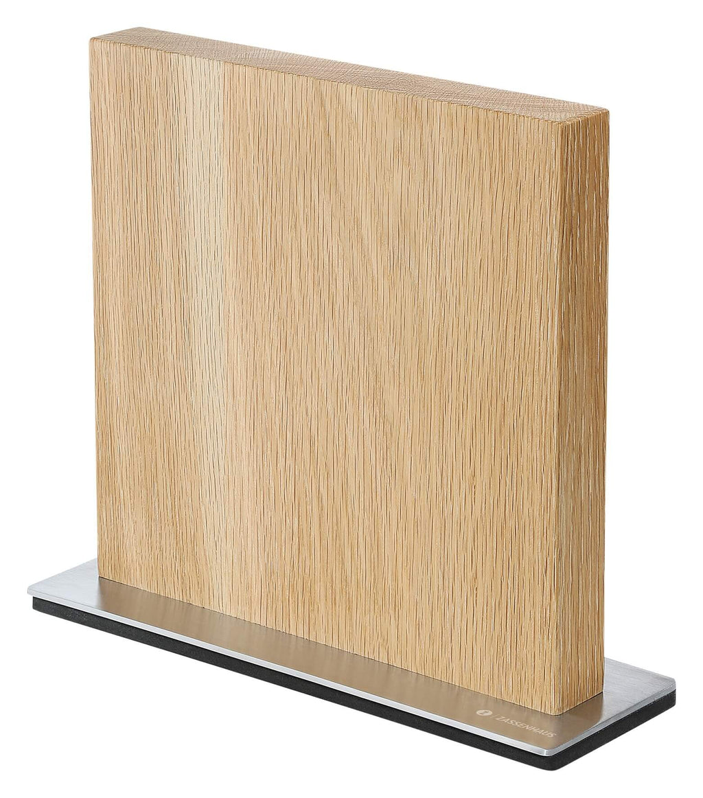 Der Magnetmesserblock aus Eiche von ZASSENHAUS zieht nicht nur Ihre Messer, sondern auch die Blicke magnetisch an. Als elegantes Design-Objekt verleiht er jeder Küche eine besondere Note. Gefertigt aus massivem Holz, ruht er auf einer stabilen und oberflächenschonenden Platte aus kühlem Edelstahl. In den Innenbereich des Blocks sind auf beiden Seiten starke Magnetstreifen eingearbeitet, die bis zu zehn Messer mit einer Klingenlänge von bis zu 23 cm sicher halten. Dadurch haben Sie stets das passende Koch-, Fleisch- oder Brotmesser griffbereit. Dieses robuste Accessoire ist nicht nur funktional, sondern präsentiert Ihre Werkzeuge angemessen und unterstreicht Ihre Kochkünste.