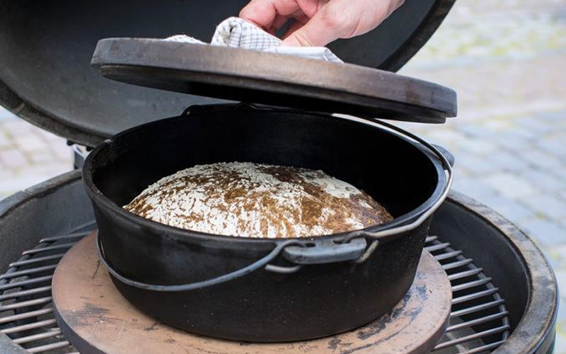 Mit diesem Dutch Oven aus Gusseisen bekommst du komplett neue Möglichkeiten auf deinem Kamado von Big Green Egg.
