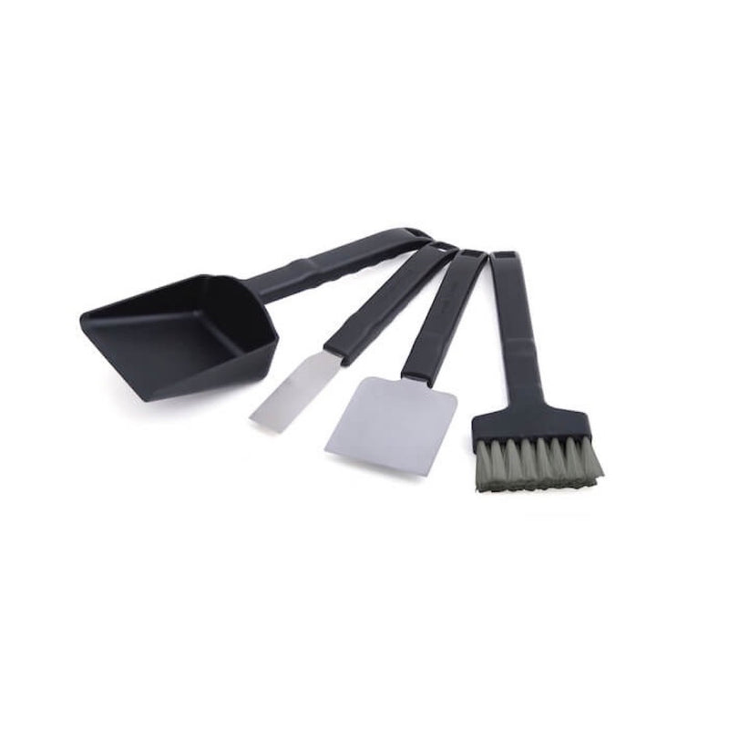 Das Kit beinhaltet eine Bürste, eine Schaufel und zwei Spachtel.