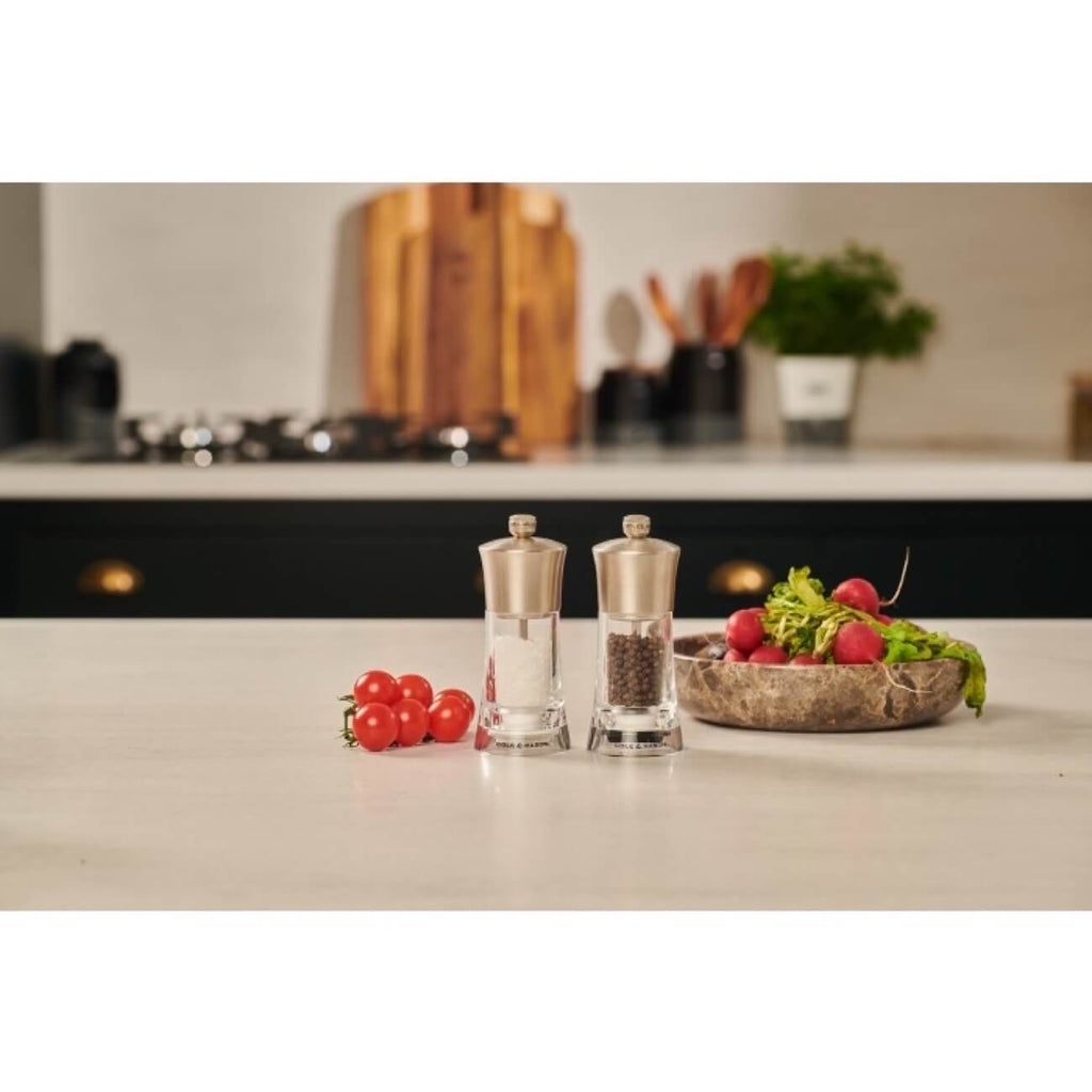 Mit der Pfeffer-/Salzmühlen Set Bromley Acryl SS 15x6x6 cm mahlen Sie Pfefferkörner frisch und aromatisch – perfekt für Ihre Lieblingsgerichte.