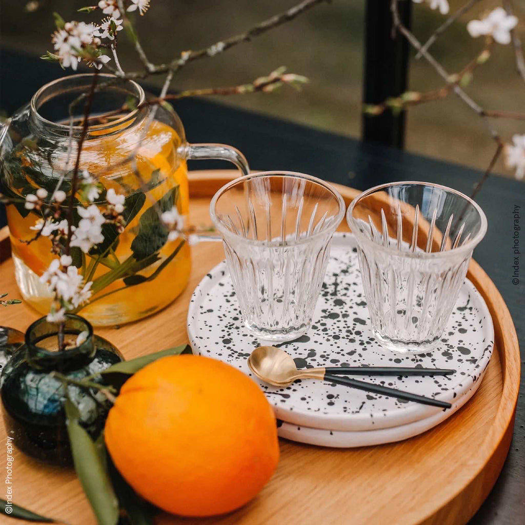 Stilvoll. Funktional. Charakterstark: Der ZINC Mug von La Rochère bringt industrielles Design auf die Kaffeetafel. Entworfen von Fabrice Gibilaro, ist der Glaskörper mit markanten Rillen versehen – inspiriert von Flugzeugmotoren. Diese Struktur sieht nicht nur kraftvoll aus, sondern schützt auch effektiv vor Hitze. Der perfekte Becher für Kaffee, Tee oder heiße Schokolade – mit Persönlichkeit.