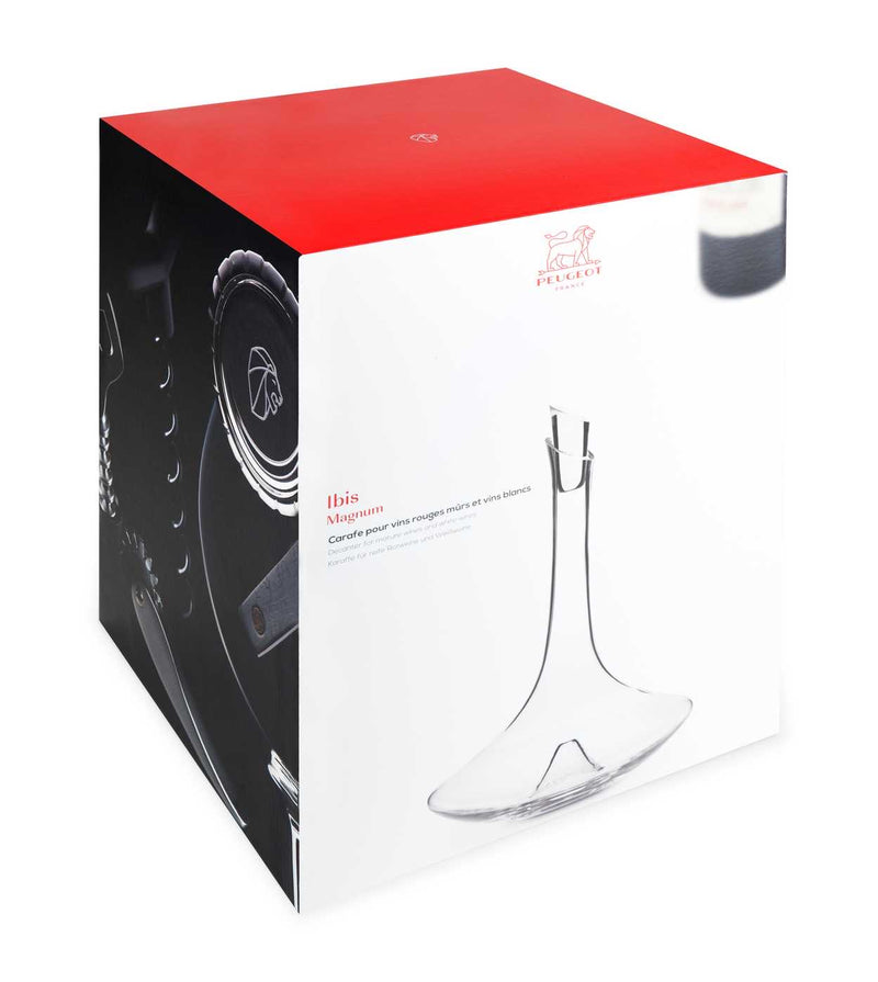 Die Weinkaraffe „Ibis Magnum“ von Peugeot ist ideal zum Dekantieren reifer Rotweine, die sie konserviert und deren Farbton sie zur Geltung bringt. Weiterhin perfekt geeignet für das Bewahren und Verfeinern der subtilen und vergänglichen Aromen von Weißweinen. Die Karaffe gestattet das Dekantieren des Weines, das heißt das Trennen von Wein und Bodensatz und einen ungetrübten Genuss. Die Karaffe „Ibis Magnum“ reduziert den Luftaustausch auf ein Minimum, um den Duft des Weines über ihren langen, engen Hals und die leicht bauchige Basis zu wahren. Die Karaffe „Ibis Magnum“ wertet darüber hinaus die Farbe des Weines auf. Die Größe der Karaffe ist auch an Magnumflaschen angepasst. Eine Weinkaraffe, die besondere Anlässe besonders macht.