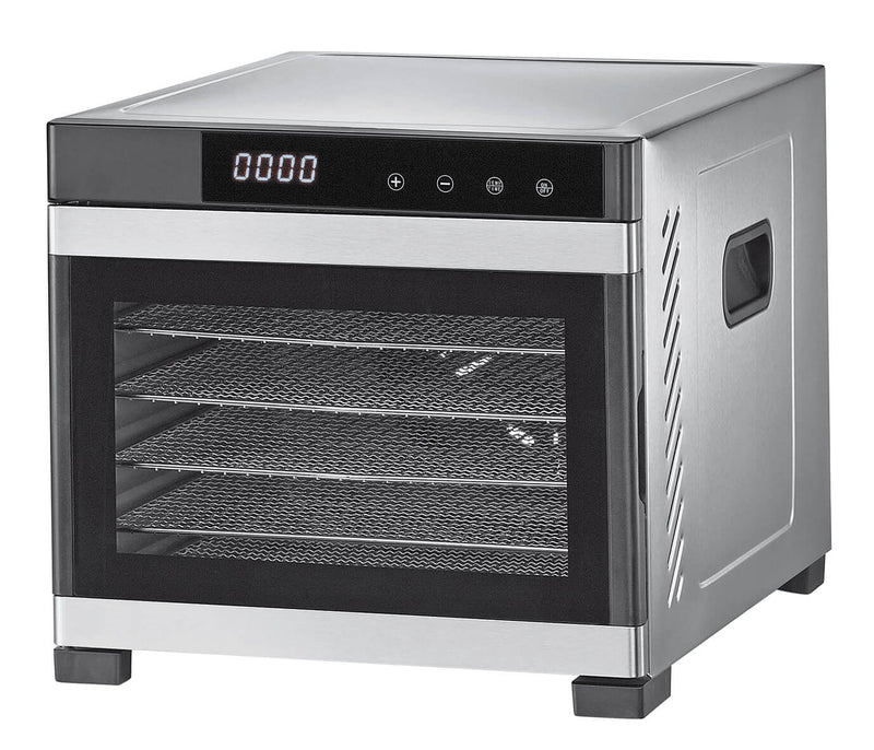 Der Dörrapparat Professional von Spring bietet Ihnen die Möglichkeit, eine Vielzahl von Lebensmitteln schonend zu trocknen und ihre Nährstoffe zu bewahren. Das Edelstahlgehäuse verleiht dem Gerät nicht nur eine moderne Optik, sondern gewährleistet auch eine lange Lebensdauer. Dank der Griffmulde ist der Transport komfortabel und einfach. Die Tür mit Sichtfenster ermöglicht es Ihnen, den Trocknungsprozess zu überwachen, während das Bedienfeld mit Zeit- und Temperaturanzeige eine einfache Steuerung ermöglicht. Mit einem Temperaturbereich von 40-70 °C und den Einstelltasten können Sie den Dörrprozess präzise steuern.