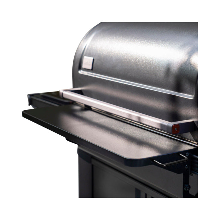 Gönn Dir etwas Freiraum. Das P.A.L. Pop-and-Lock® Folding Front Shelf wird an der P.A.L.-Schiene der neuen Traeger Modelle befestigt und bietet zusätzlichen Platz zum Vorbereiten, Plattieren, Ausruhen von Fleisch und mehr.