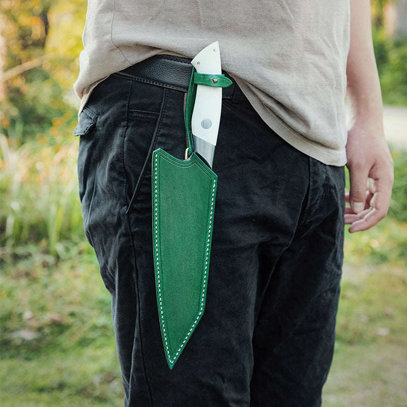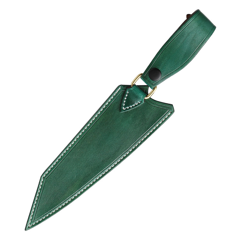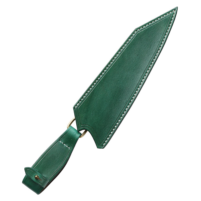 Hochweriges Messeretui aus Leder in grüner Farbe. Inkl. Halter für die Befestigung am Gurt.